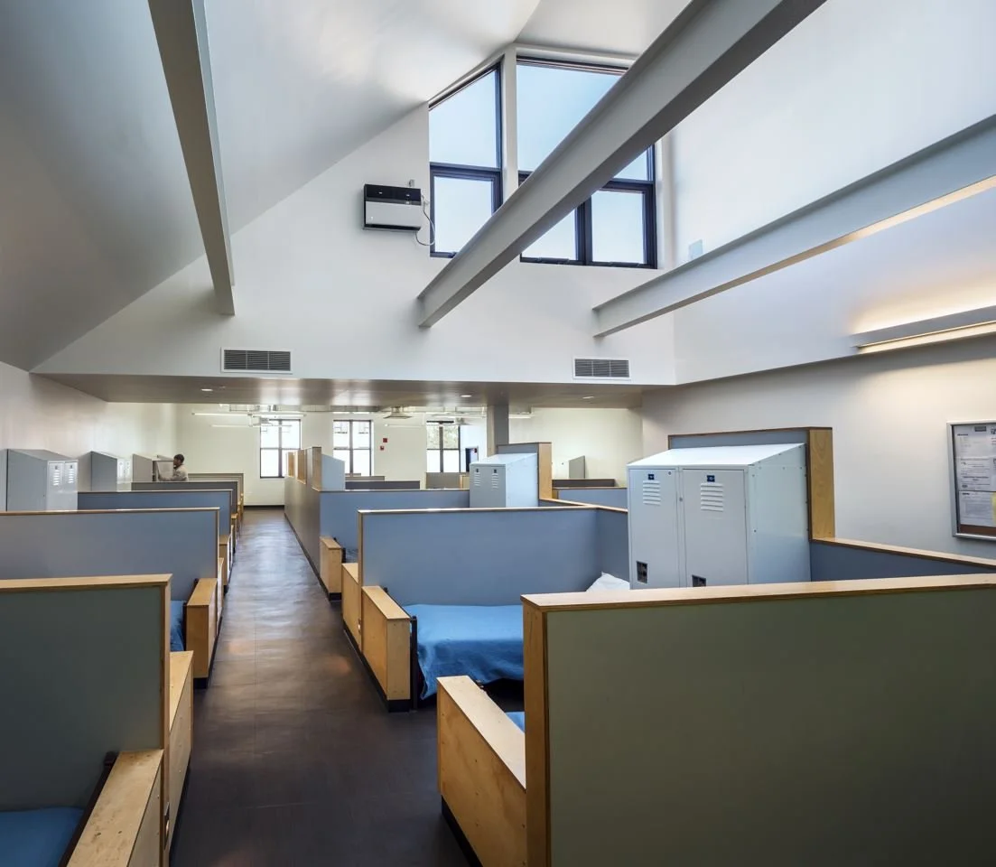 The Bronx Boulevard Project is the renovation and conversion of a two-story, 20,000-square-foot manufacturing facility into a 108-bed homeless shelter for Project Renewal. Originally constructed in 1928, the building most recently served as a factory for plastic and metal products. In addition to sleeping and bathing areas, the project includes space for medical and psychiatric treatment, social services, a dining room, recreation areas, and administrative components.