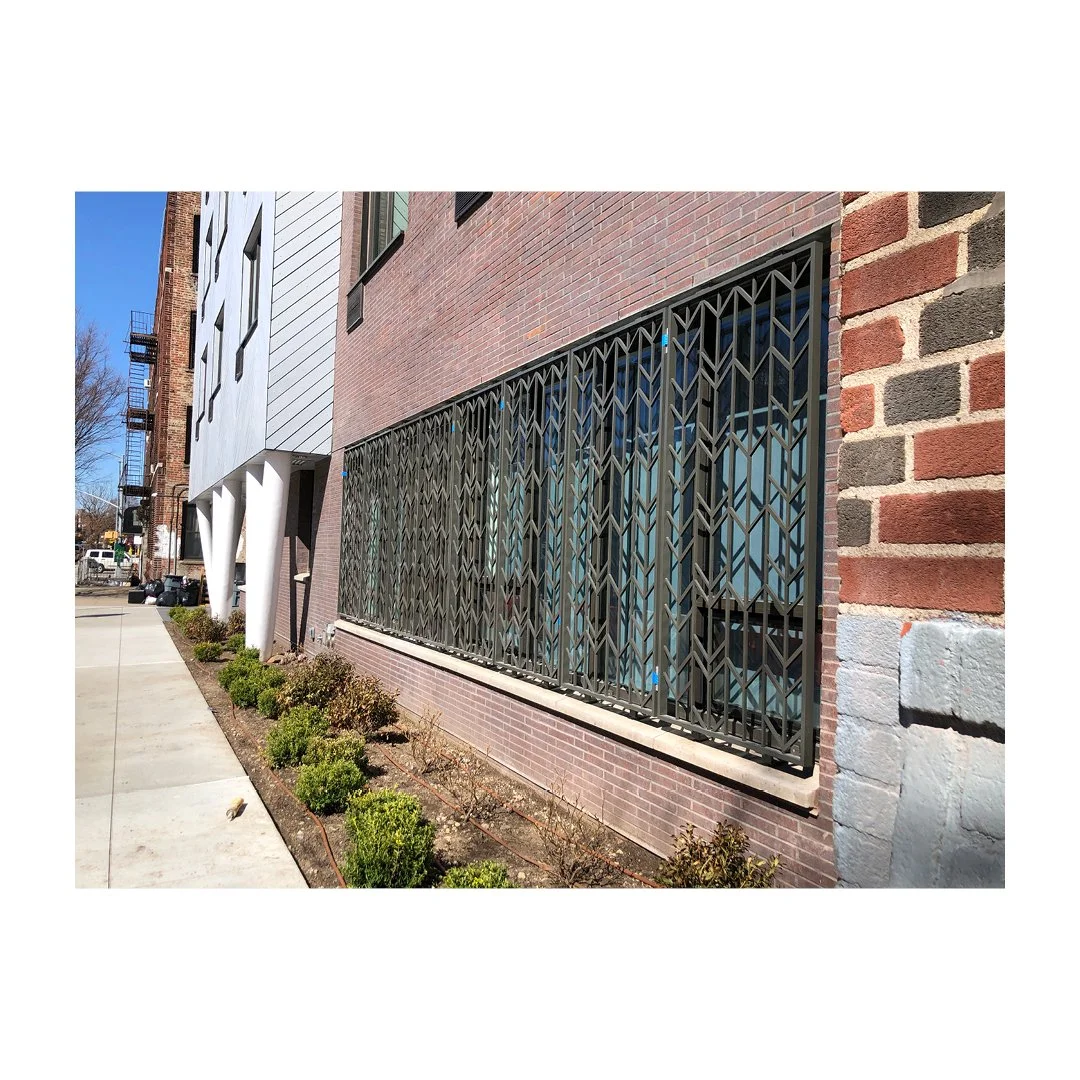 Decorative grills at the street level add texture and rhythm to the façade—enhancing visual interest, providing a sense of enclosure, and contributing to a more engaging pedestrian experience. These details bring depth and character while providing security and transparency.