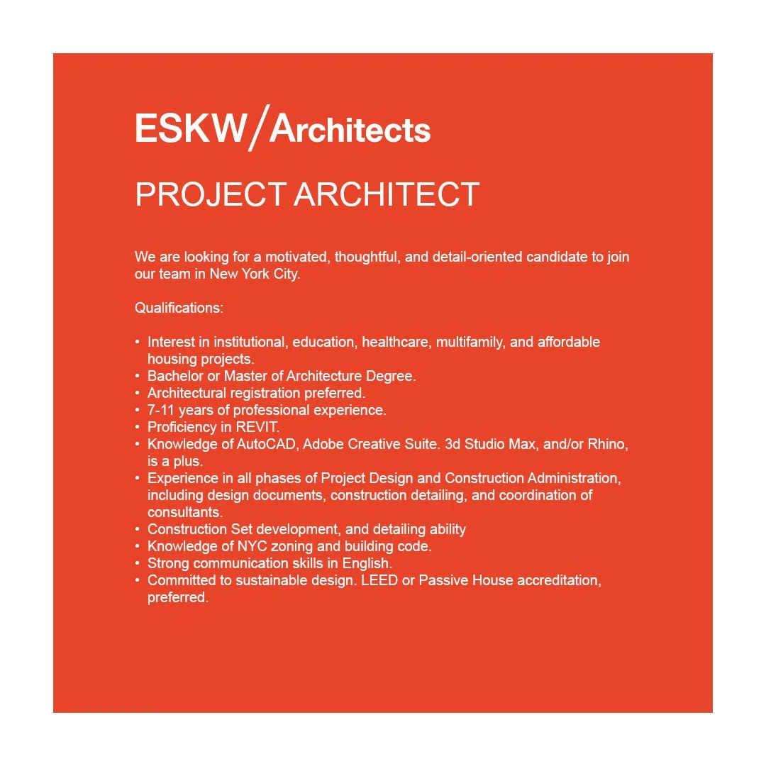 #eskwarchitects #eskwa #hiring #nycjobs #nycarchitect #architecturejobs #architecturejob #jobsearch #archjobs #projectarchitect #archinect