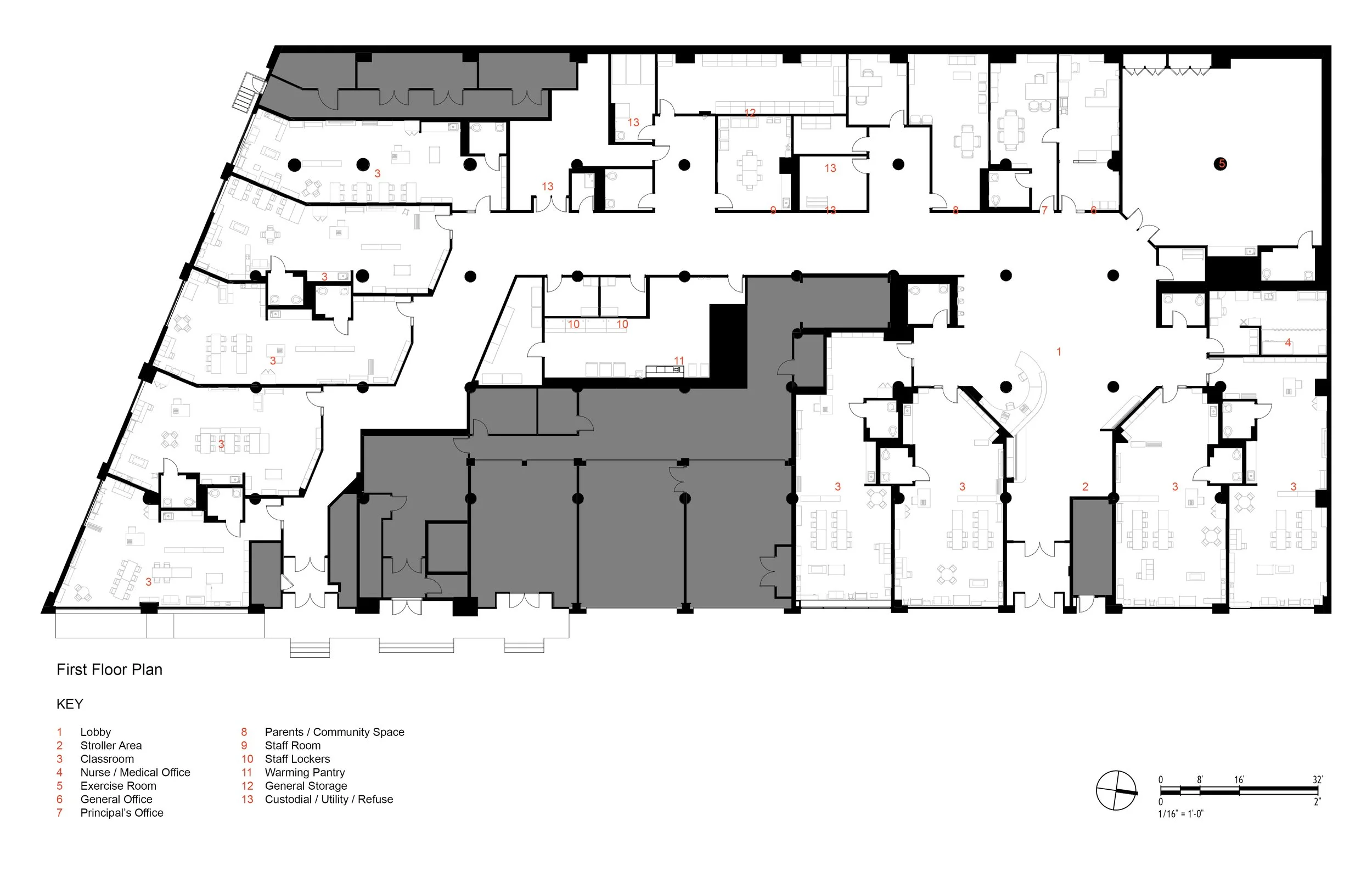 Additional program spaces include an exercise room, medical office, administrative suite, staff and community rooms, and a warming pantry. The new 3K Center will provide high quality early childhood education to the most rapidly growing neighborhood in New York City.